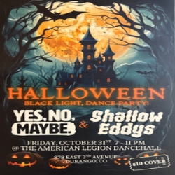 Join us for a black light dance party in our dance hall! Check out our newly renovated dance floor - it’s spooky shiny. Live music sets by Yes, No, Maybe...