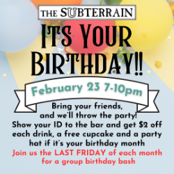 Monthly event! The last friday of every month- show your ID at the bar, if it's your birthday month get $2 off each drink, a birthday hat and a cupcake!...